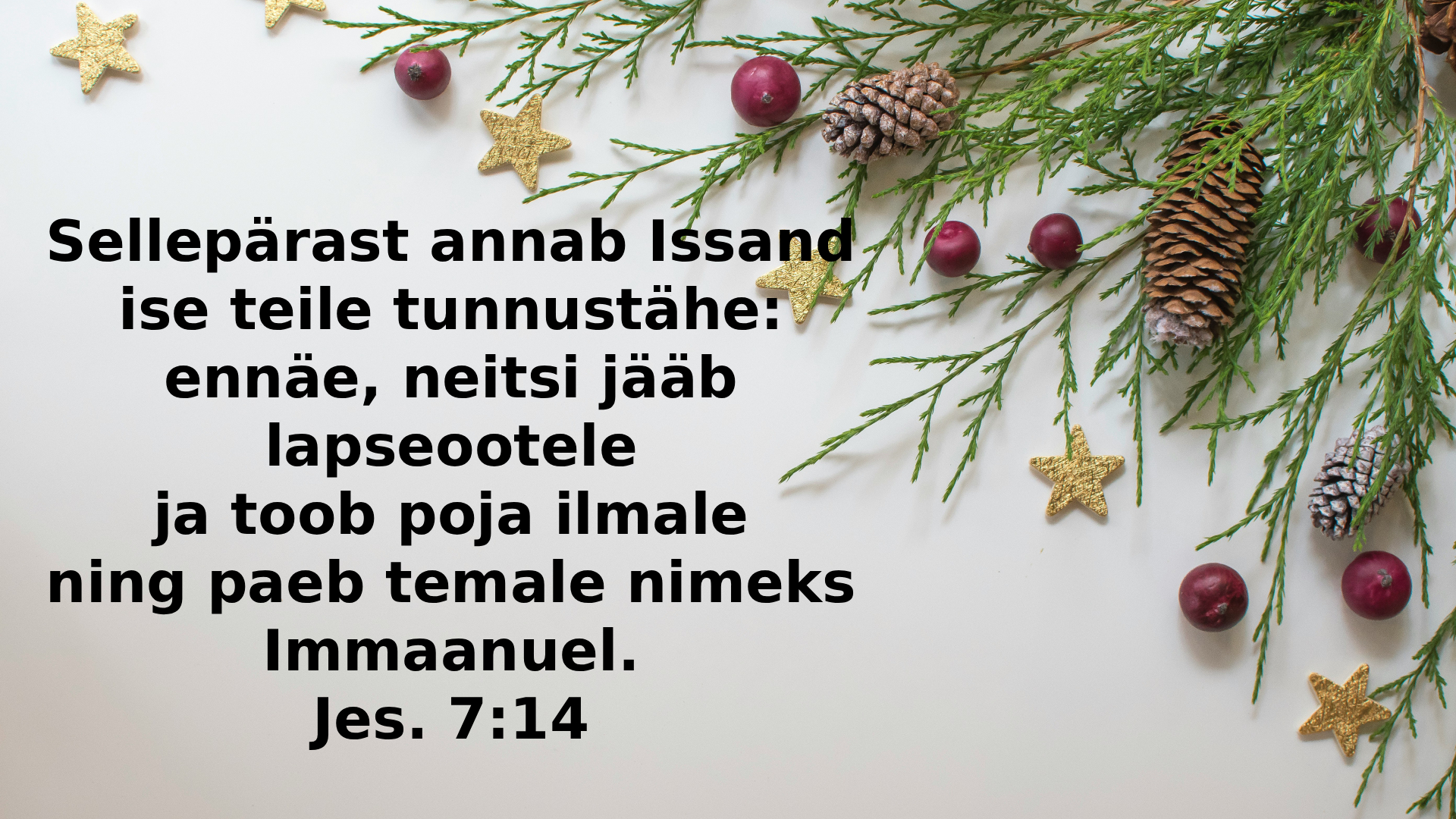 Ja Issand käskis öelda Aahasele veel seda: „Küsi enesele Issandalt, oma Jumalalt, tunnustäht sügavusest või kõrgusest!” Aga Aahas vastas: „Ma ei küsi ega kiusa Issandat!” Siis Jesaja ütles: „Kuulge ometi, Taaveti sugu! Ons teil veel vähe inimeste vaevamisest, et te ka mu Jumalat vaevate? Sellepärast annab Issand ise teile tunnustähe: ennäe, neitsi jääb lapseootele ja toob poja ilmale ning paneb temale nimeks Immaanuel.”