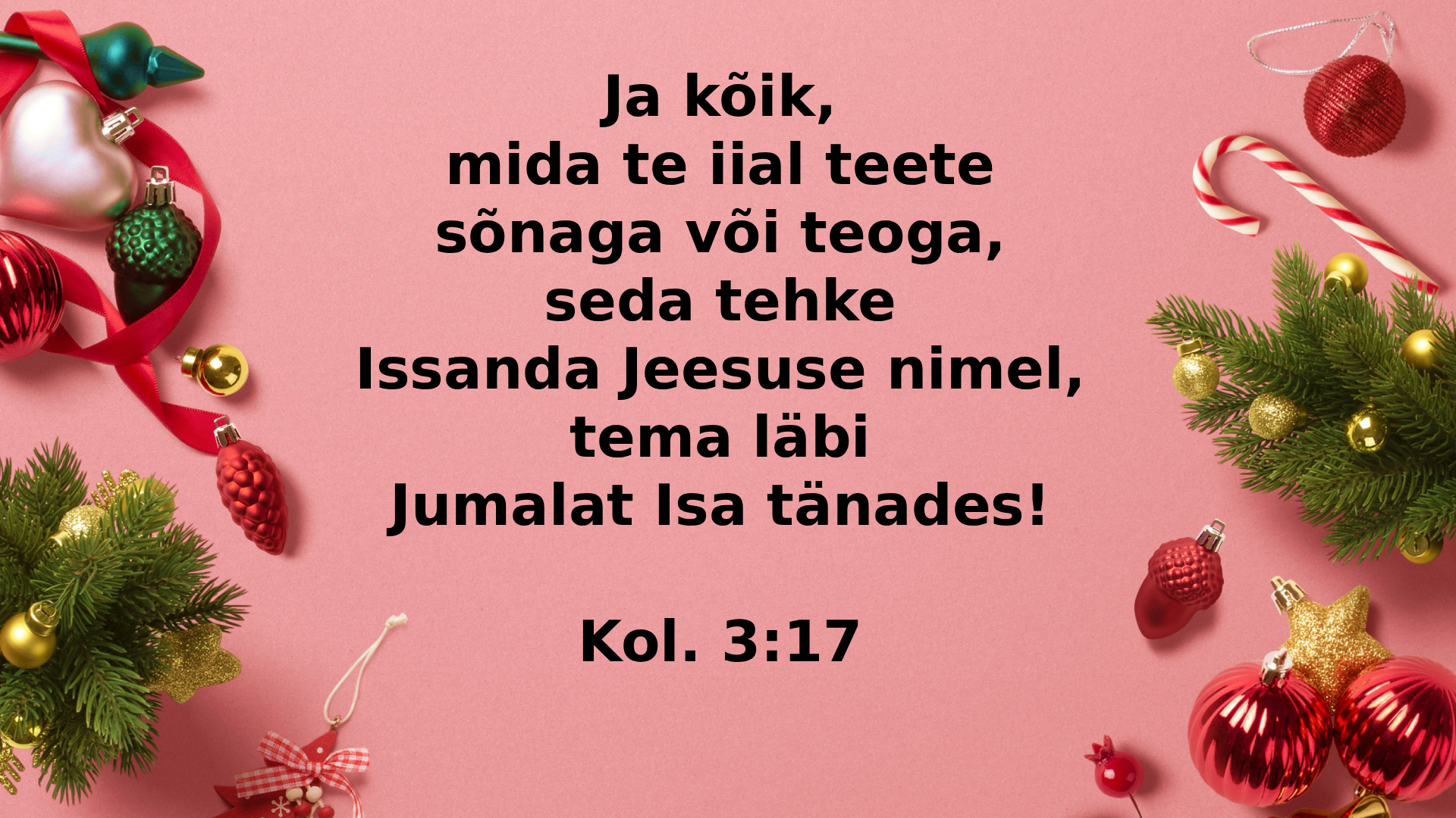 2025. aasta lõpeb peagi. Mõned päevad on jäänud ja astume taas uude aastasse. Kuidas on möödunud aasta läinud, teab ilmselt igaüks ise kõige paremini. Lugedes täna apostel Pauluse juhiseid koloslastele, võime tagasi vaadates mõelda, kui hästi oleme meie neid juhised lahkuval aasta suutnud järgida. On üks laul, mis ütleb nii: „Ole homme parem, kui olid täna; ole homme parem, kui olid eile.” Jah, meil on alati kasvamisruumi. Ütleb ju Jeesus meile sedagi, et meie eesmärk peaks olema täiuslikkus, just nagu meie taevane Isa on täiuslik. Püüame siis selle poole. Kui möödunud aastast on veel midagi jäänud, mis vajab korraldamist – tehkem seda! Ja astudes uude aastasse, püüdkem olla rohkem andestavad, pikameelsed, lahked, tänulikud, rahumeelsed. Armastagem üksteist nii, nagu Jeesus meid on armastanud. Seda nii perekonnas, koguduses kui kõigis suhetes nende inimestega, kelle keskel me elame.