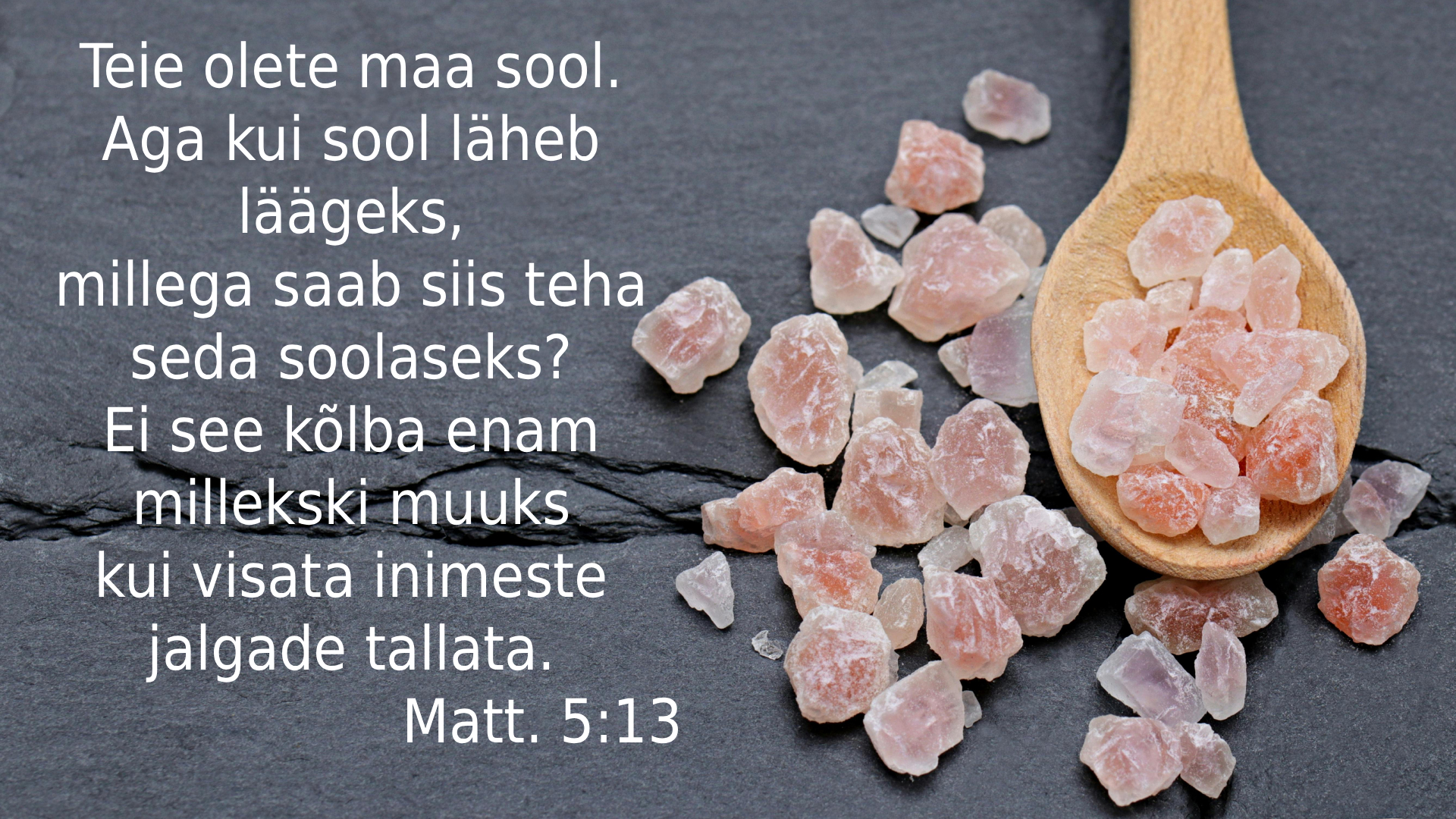 Jeesuse Mäejutlust, mille algust tänases evangeeliumis loeme, võib nimetada ka Jeesuse järgija elu juhiseks. Sissejuhatuses nimetab Jeesus oma järgijaid maa soolaks ja maailma valguseks. Mäejutlus seletabki seda, mida tähendab maa soolaks ja maailma valguseks olemine – kuidas tuleb elada ja käituda, et kristlaste hea mõju selles maailmas tõepoolest tuntav ja nähtav oleks. Lihtne see ülesanne ei ole. Jeesuse järgijana elamine tähendab, et püüelda tuleb täiuslikkuse poole. Mäejutluse keskses lauses annab Jeesus eesmärgi: „Teie olge siis täiuslikud, nõnda nagu teie taevane Isa on täiuslik!” Kes on püüdnud saavutada suuri eesmärke, teab, kui raske see võib olla ja kui palju selleks pingutada tuleb. Elada nii, nagu Jeesus Mäejutluses meid õpetab, tundub pea võimatu ülesandena. Siinkohal on hea meelde tuletada, et Jeesus on oma järgijaile läkitanud abi, Püha Vaimu, kes juhatab ja annab jõudu elada Jeesuse õpetuste kohaselt. Lihtsamaks ei tee Jeesuse järgijate elu ka see, et head teod ja heatahtlik suhtumine ei pruugi kaasa tuua teiste inimeste lugupidamist. Võib isegi juhtuda, et headest inimestest räägitakse valetades kurja. Kuid olenemata sellest, kuidas teised käituvad, on kristlaste ülesanne ikkagi olla heatahtlik ja leebe, olles selliselt ühiskonnas soolaks ja valguseks. Mäejutluses toodud juhised on head tegelikult kõigile. Me ütleme, et ka õpetajad on maa sool. Veel parem oleks, kui kõik püüaksid elada kui maa sool. Mida suurem osa ühiskonnast elaks heatahtliku, abivalmi ja leebe suhtumisega teistesse, seda vähem oleks meie maal probleeme. Armastada kõiki tähendab aidata, toetada, teha head ilma vastutasu ootamata, mitte maksta kätte – kõik mõistavad, et selline eluviis on hea. Püüdkem igaüks anda oma panus, et elu meie maal oleks parem, järgides seda, mida Jeesus on meile öelnud!