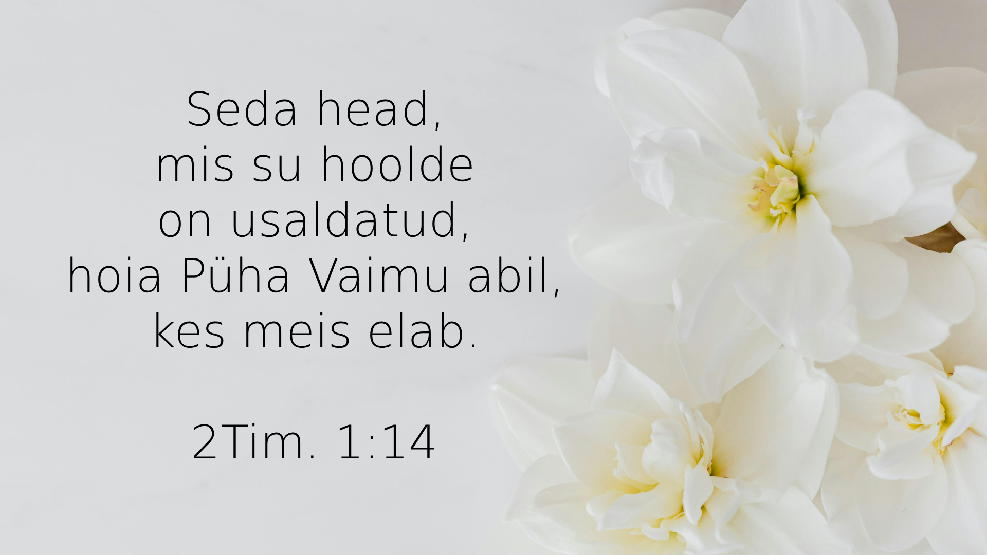 Jumal ei ole meile ju andnud arguse vaimu, vaid väe ja armastuse ja mõistlikkuse vaimu. Ära siis häbene tunnistamast meie Issandat ega mind, tema vangi, vaid kannata koos minuga kurja evangeeliumi pärast Jumala väe abil, kes on meid päästnud ja kutsunud püha kutsega, mitte meie tegude järgi, vaid omaenese kavatsuse ja armu järgi, mis meile on antud Kristuses Jeesuses enne igavesi aegu, nüüd on aga saanud avalikuks meie Päästja Kristuse Jeesuse ilmumise läbi, kes on kõrvaldanud surma ning on evangeeliumi kaudu toonud valge ette elu ja kadumatuse, mille kuulutajaks ja apostliks ning õpetajaks mind on seatud. Sel põhjusel ma ka kannatan. Ent ma ei häbene, sest ma tean, kellesse ma olen uskuma hakanud ja olen veendunud, et tema on vägev hoidma minu hoolde usaldatut oma päevani. Võta terve õpetuse eeskujuks see, mida sa minult oled kuulnud usus ja armastuses, mis on Kristuses Jeesuses! Seda head, mis su hoolde on usaldatud, hoia Püha Vaimu abil, kes meis elab.